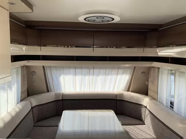 De ruime rondzit, waar deze caravan over beschikt, kan ook als slaapgelegenheid worden gebruikt. De keuken is in het midden van de caravan gemonteerd. De boiler, die in de caravan is ingebouwd, voorziet u snel van warm water. De koelkast met vriesvak biedt voldoende ruimte voor heel uw voorraad.